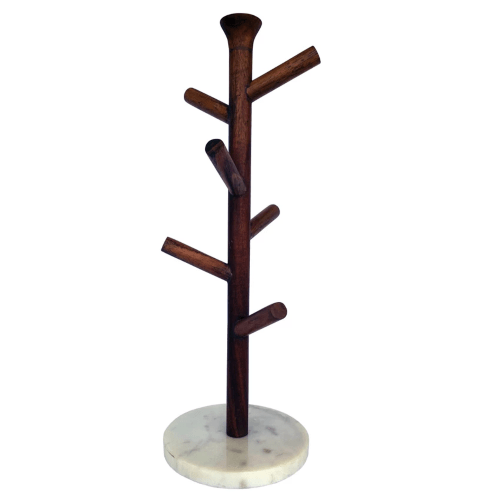 Mango Wood & Marble Mug Rack