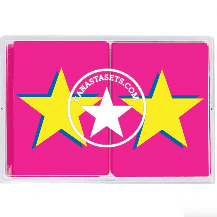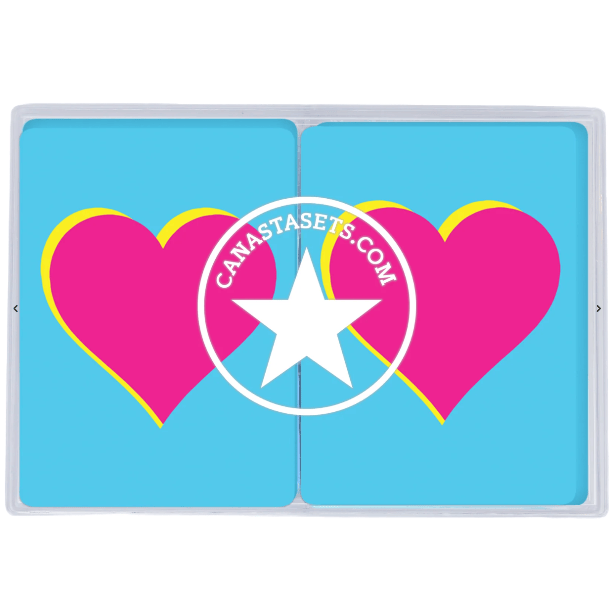 2 decks of Canasta playing cards.