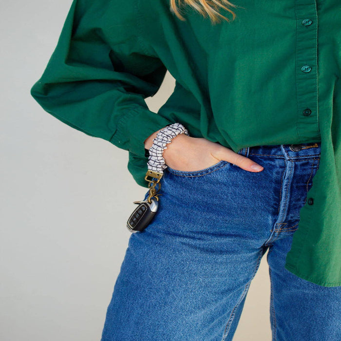 Keep your essentials organized in style with this black and white checkered keychain from our collaboration with Lindsey Teaches. The neutral pattern pairs effortlessly with any outfit while keeping your keys secure and accessible.