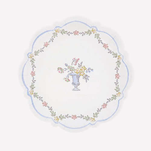 Delicate paper side plates featuring a chintz-style floral pattern and ornamental center urn. With a gently scalloped edge reminiscent of heirloom ceramics, these plates elevate garden lunches, tea service, and seasonal gatherings with timeless sophistication.